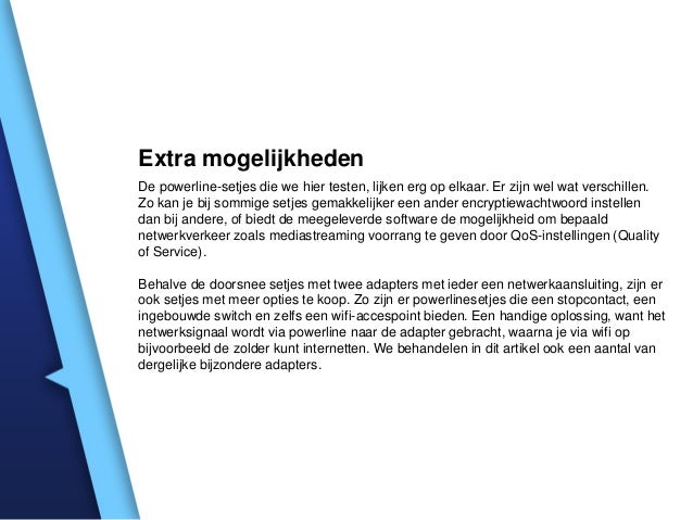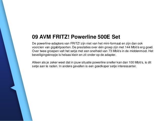 Powerline adapters should always be plugged directly into the wall not into a power strip and kits without power passthrough will block one or both of your wall outlets. Een beetje vreemd maar de truc is dat ze ook zijn te configureren als router. Er moeten twee of meer powerline adapters worden gebruikt.